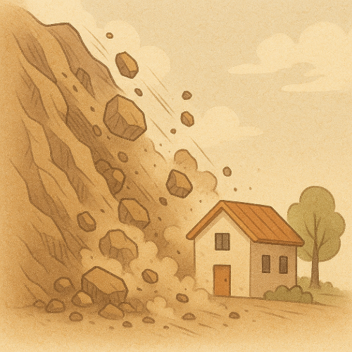 ▶ 산이 무너져 내려오는 꿈 - 예상치 못한 장애물이 나타날 수 있어 주의를 요하는 꿈입니다.